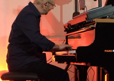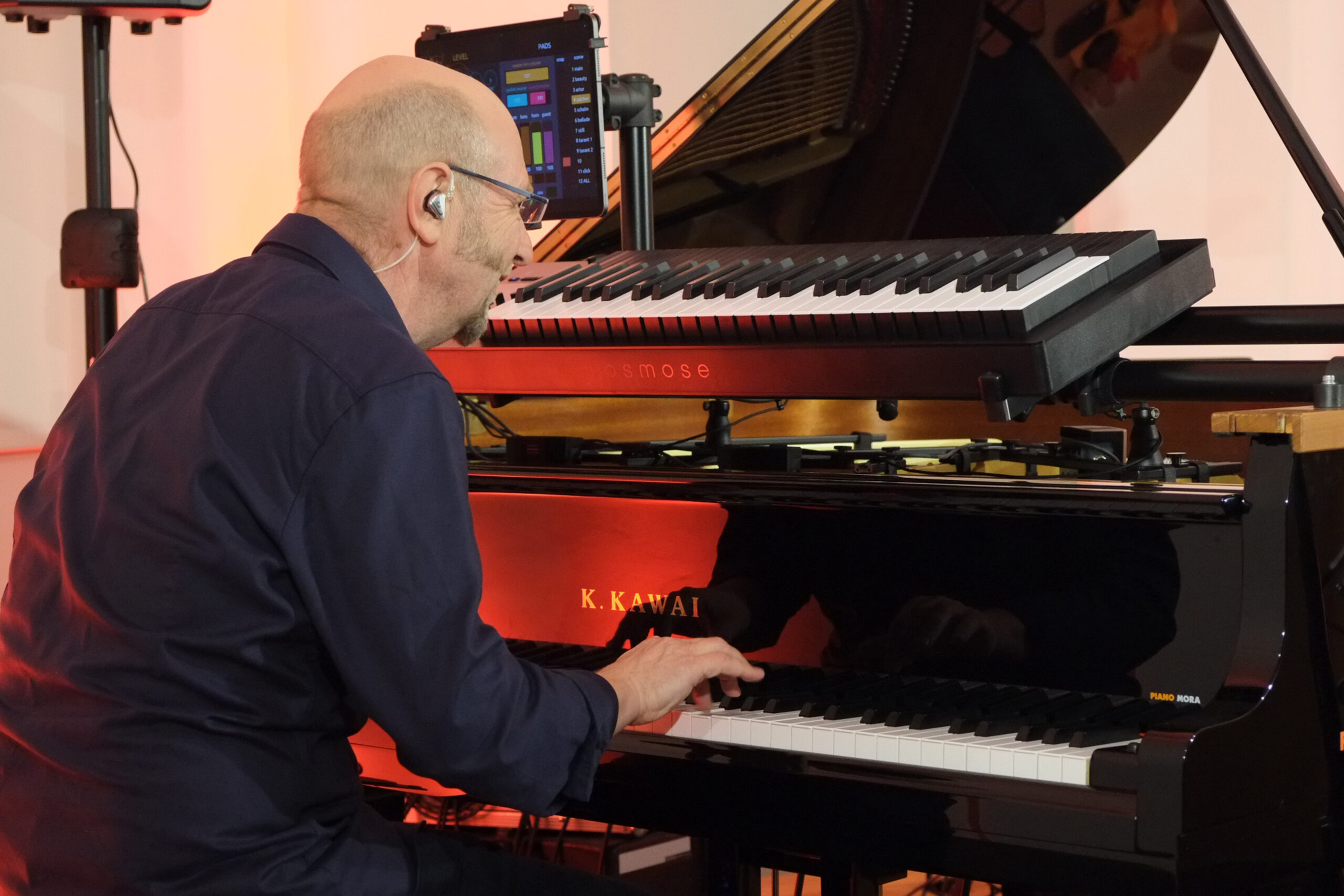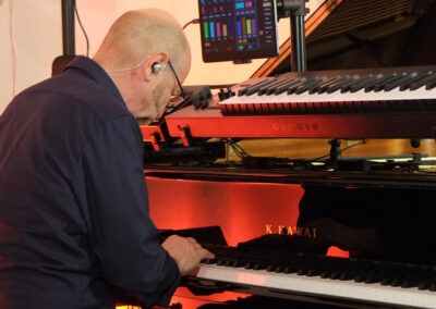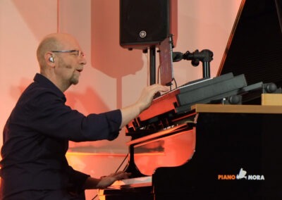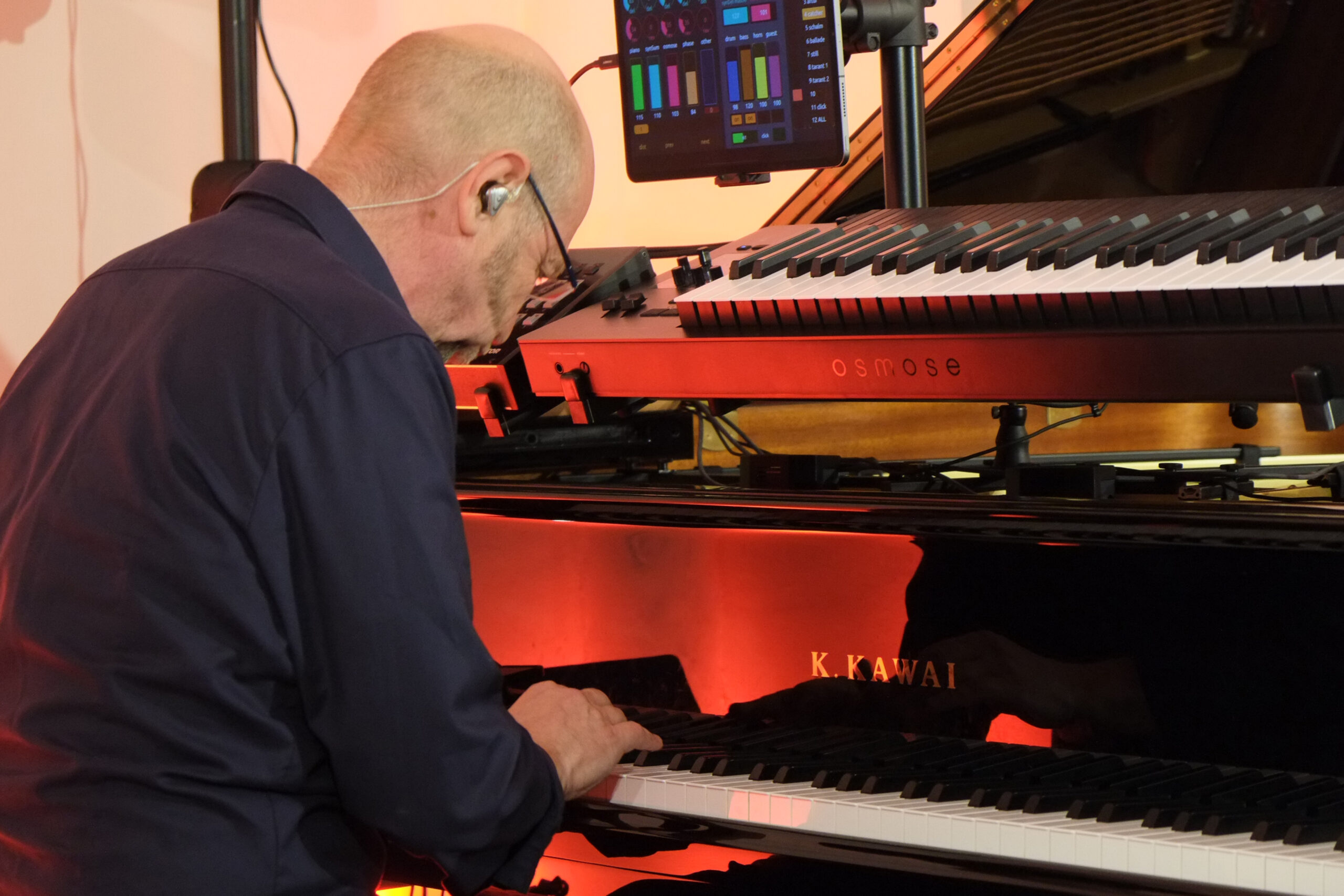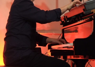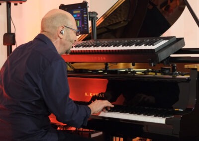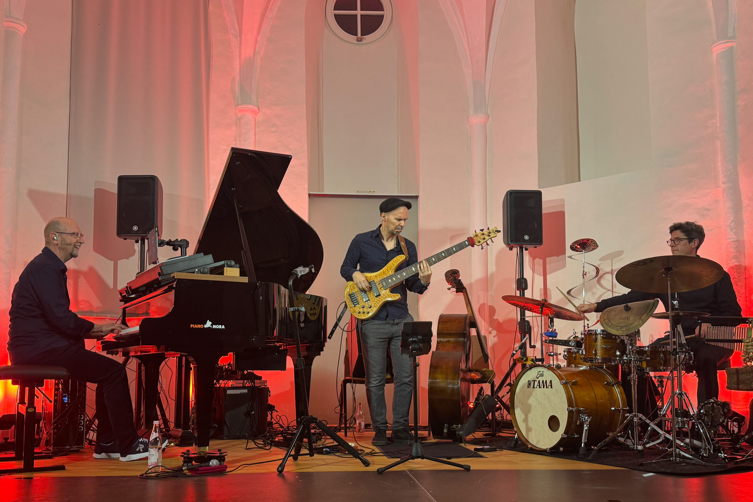 Pleinting. Betritt man die Alte Kirche in Pleinting, empfängt einen ein unaufgeregter und ästhetisch einladender Raum. Auf der Bühne befinden sich ein Flügel, Kontrabass und Schlagzeug, die üblichen Instrumente eines Klaviertrios. Jedoch stutzt man wegen der Aufbauten auf dem Flügel. Dort scheint ein weiteres Instrument zu sein. Dazu später mehr. Gleich mit dem ersten Stück „Es führt über den Main eine Brücke aus Stein“, gelingt dem deutschen Pianisten Edgar Knecht eine einzigartige Symbiose aus Klassik, Jazz und deutschem Volkslied. Die zweite Komposition basiert auf dem Volkslied „Kein schöner Land in dieser Zeit“. Sie trägt den Titel „Beautiful Country“, weil, wie Edgar Knecht ausführte, der Missbrauch des deutschen Liedgutes durch den Rassismus und Nationalismus des Naziregimes dieses Genre kontaminiert hat. So möchte er die eigenen Wurzeln in ein weltoffenes Konzept stellen.